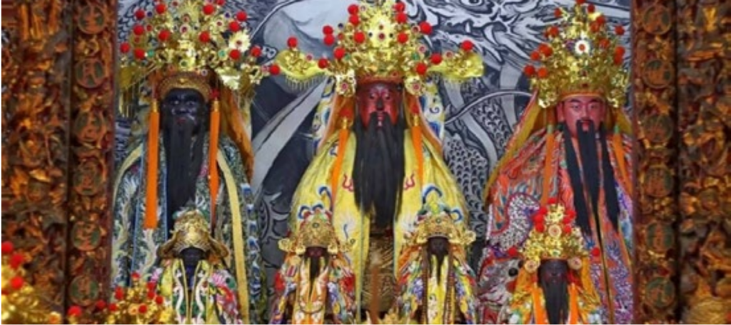 鳳林宮的神尊,中間為溫府千歲,左邊為池府千歲,右邊為朱府千歲。
