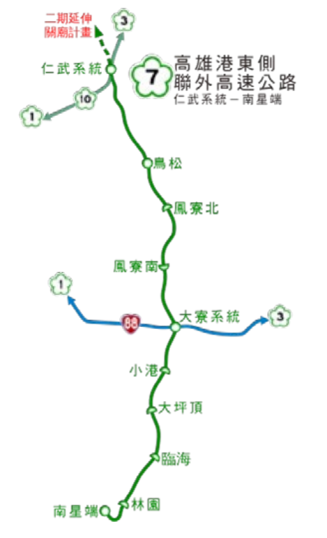 為了解決國道一號高雄段長年壅塞,以及疏通高雄港貨櫃運輸,高公局從 101 年起規畫國7高速公路,為臺灣籌建一條南北向高速公路。